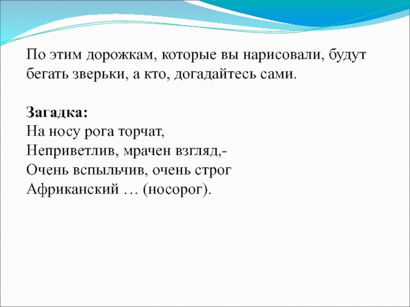 Слайд 12По этим дорожкам, которые вы нарисовали, будут бегать зверьки, а кто,