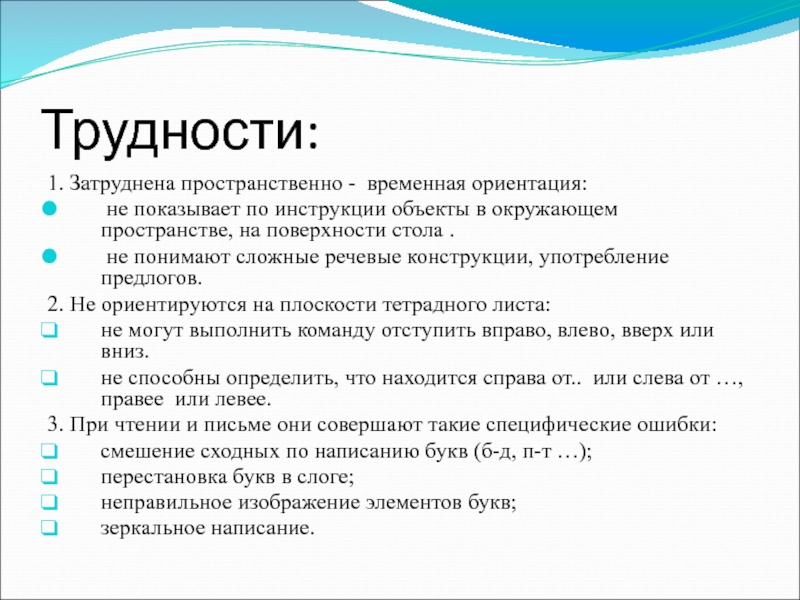 не способны определить, что находится справа от.. или слева от …, правее или левее.