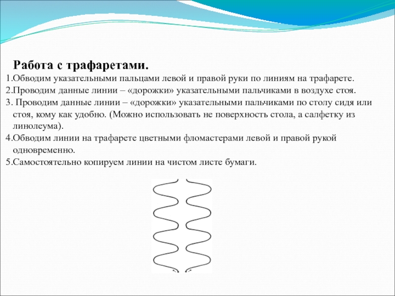 Проводим данные линии – «дорожки» указательными пальчиками в воздухе стоя.