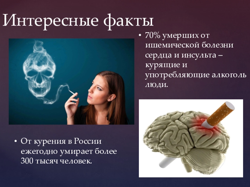 От курения в России ежегодно умирает более 300 тысяч человек.