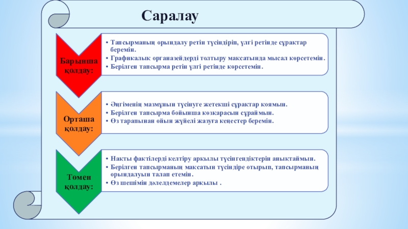 «Ойлан, тап, бөліс» әдісі арқылы бағалау.