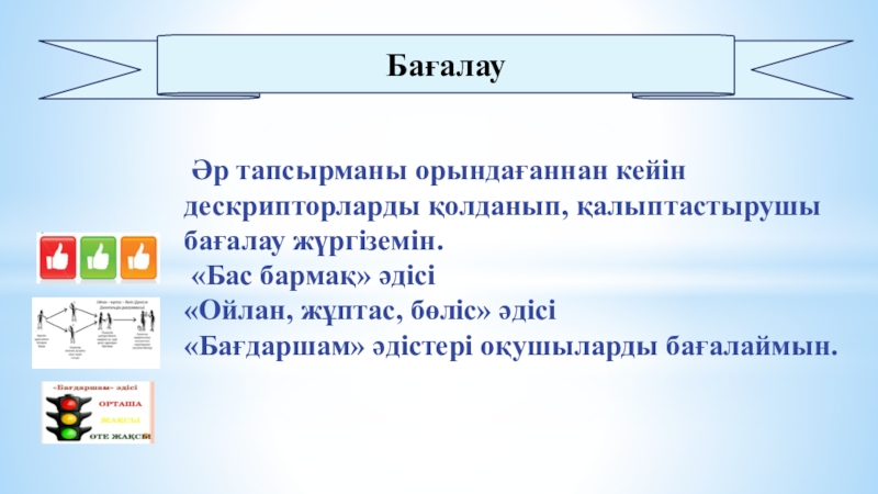 «Бас бармақ» әдісі арқылы әр топ бірін-бірі бағалау.