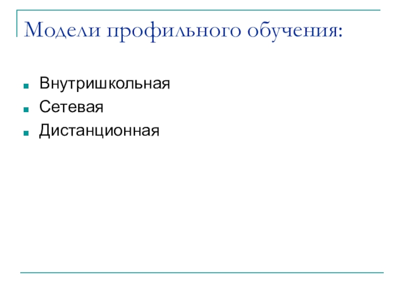Модели профильного обучения:ВнутришкольнаяСетеваяДистанционная