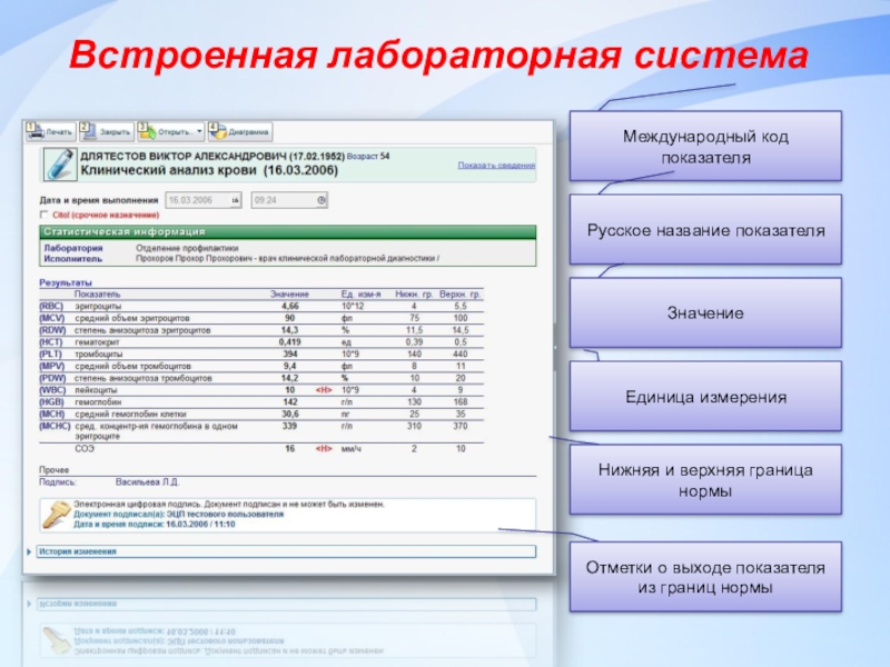Отметки о выходе показателя из границ нормы