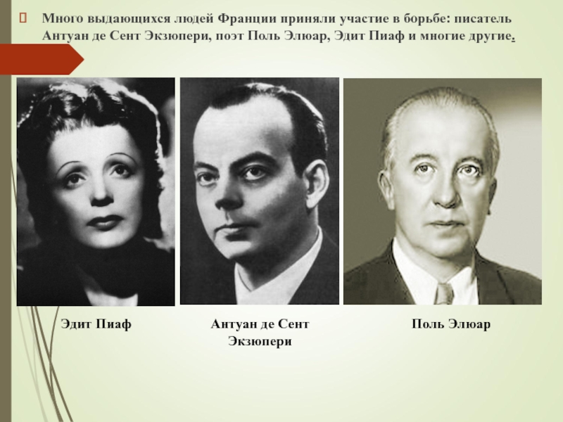 Много выдающихся людей Франции приняли участие в борьбе: писатель Антуан