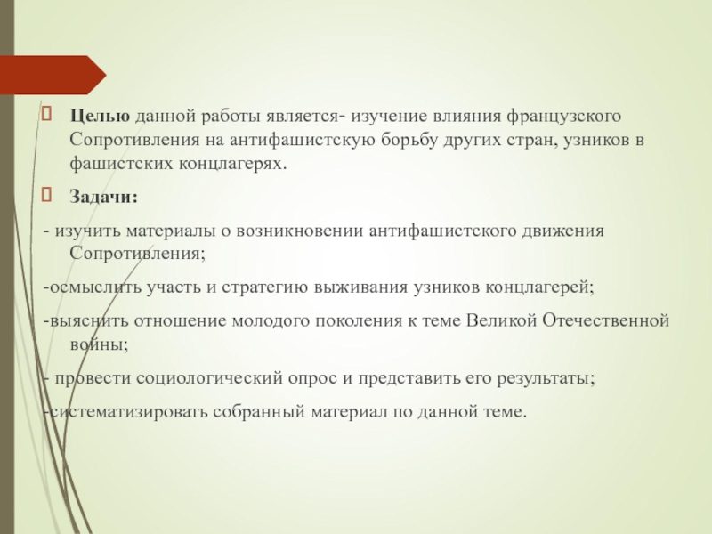 Целью данной работы является- изучение влияния французского Сопротивления на антифашистскую