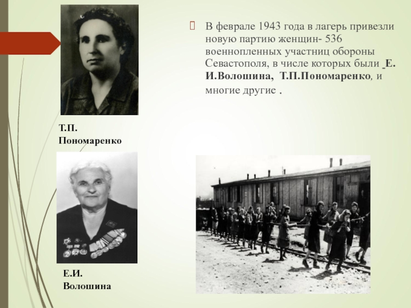 536 военнопленных участниц обороны Севастополя, в числе которых были Е.И.Волошина, Т.П.Пономаренко, и многие другие .