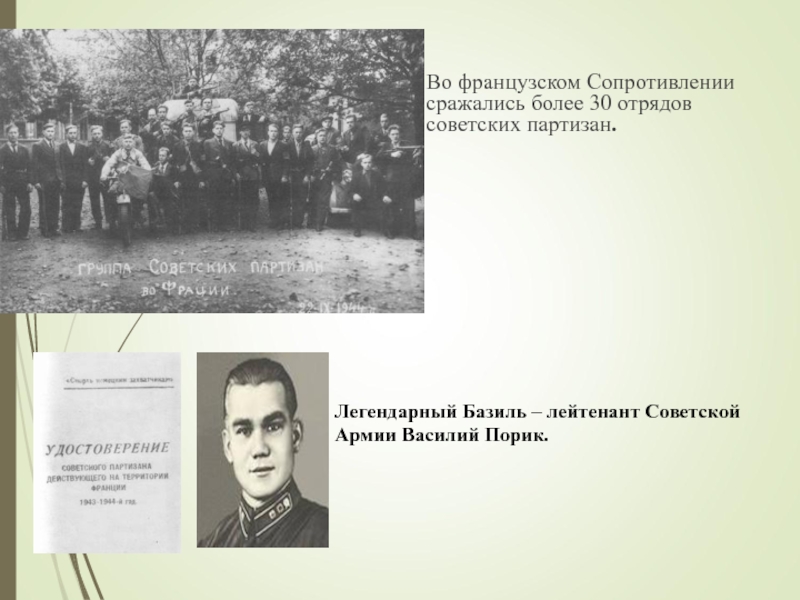 Во французском Сопротивлении сражались более 30 отрядов советских партизан.