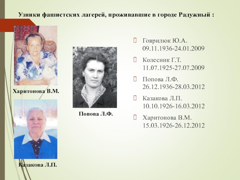 Узники фашистских лагерей, проживавшие в городе Радужный :
