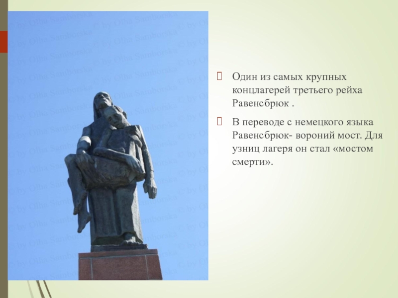 с немецкого языка Равенсбрюк- вороний мост. Для узниц лагеря он стал «мостом смерти».
