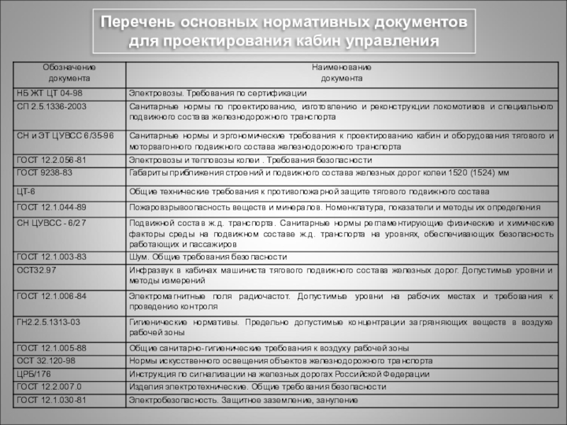 подаваемого в кабину электровоза (НБ ЖТ ЦТ-04, СП 2.5.1336)