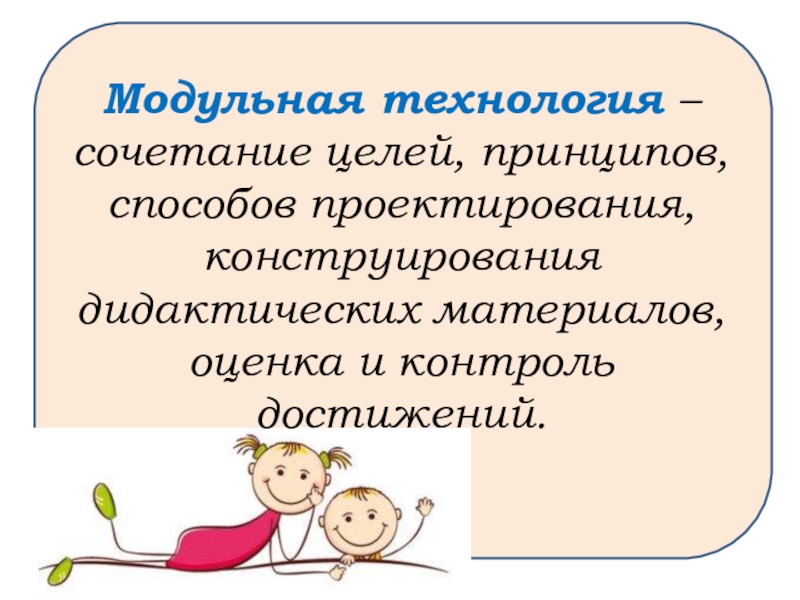 Слайд 7Модульная технология – сочетание целей, принципов, способов проектирования, конструирования дидактических материалов,