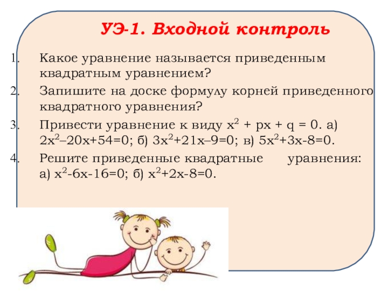 обобщить и систематизировать свои знания о приведенных квадратных уравнениях;