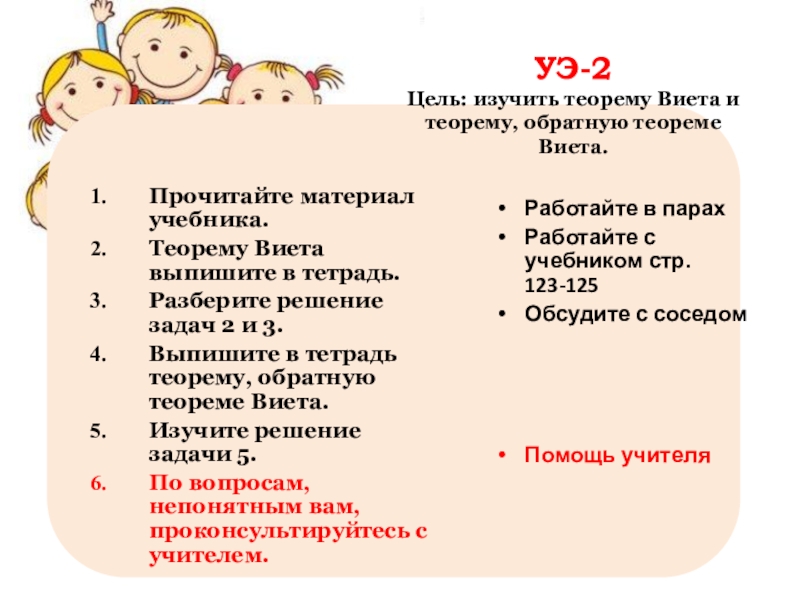 2. У тебя есть право на получение консультации учителя. Используй это право!