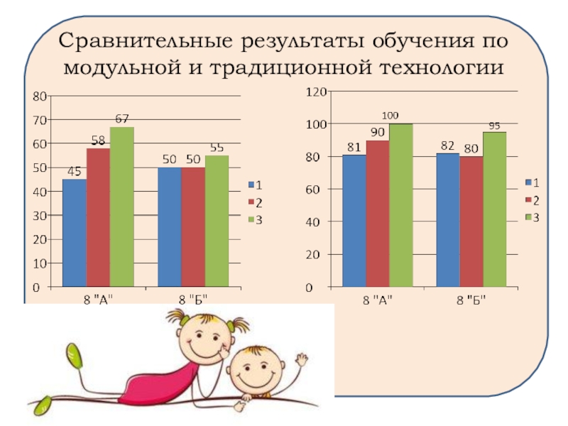 Слайд 33Сравнительные результаты обучения по модульной и традиционной технологии