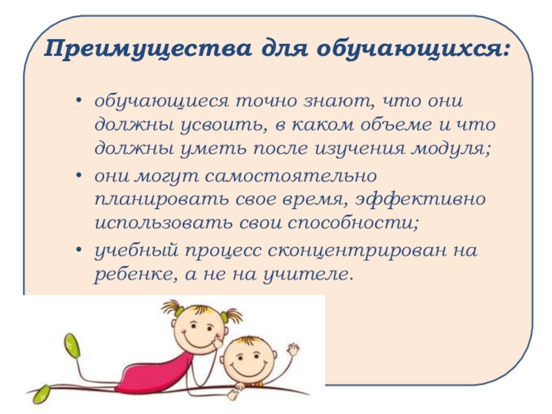 с определенной дозой помощи) достигает конкретных целей учения в процессе работы с модулем.