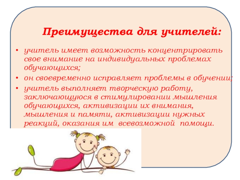 учитель имеет возможность концентрировать свое внимание на индивидуальных проблемах