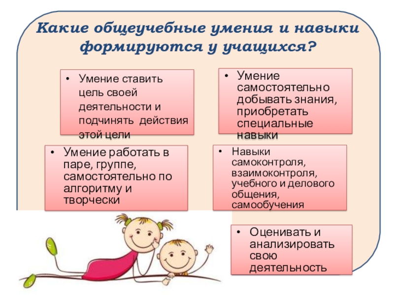 Слайд 13Какие общеучебные умения и навыки формируются у учащихся?