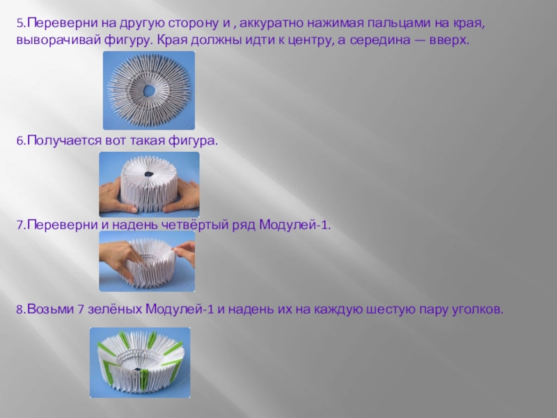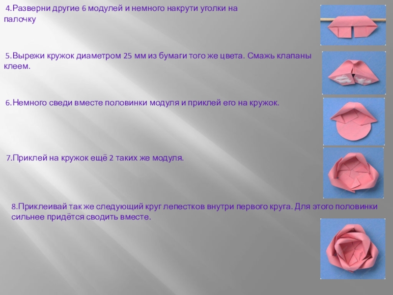 6.Немного сведи вместе половинки модуля и приклей его на кружок.