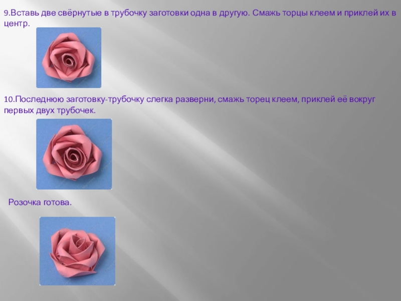 10.Последнюю заготовку-трубочку слегка разверни, смажь торец клеем, приклей её вокруг первых двух трубочек.