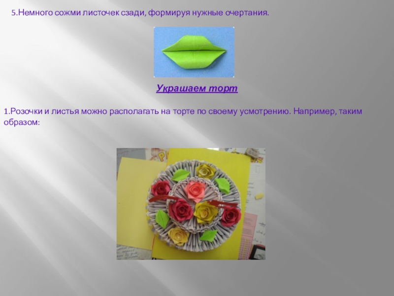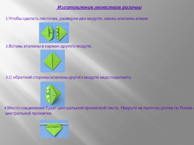 4.Место соединения будет центральной прожилкой листа. Накрути на палочку уголки по бокам от