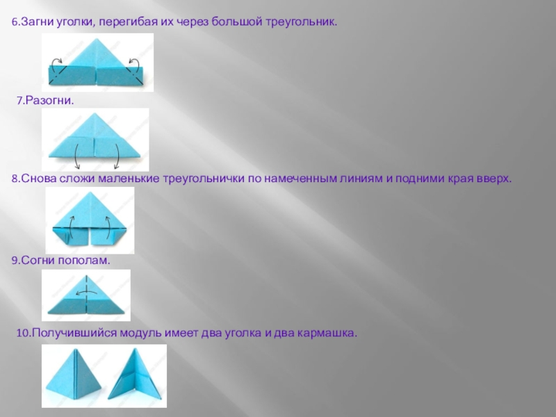 10.Получившийся модуль имеет два уголка и два кармашка.