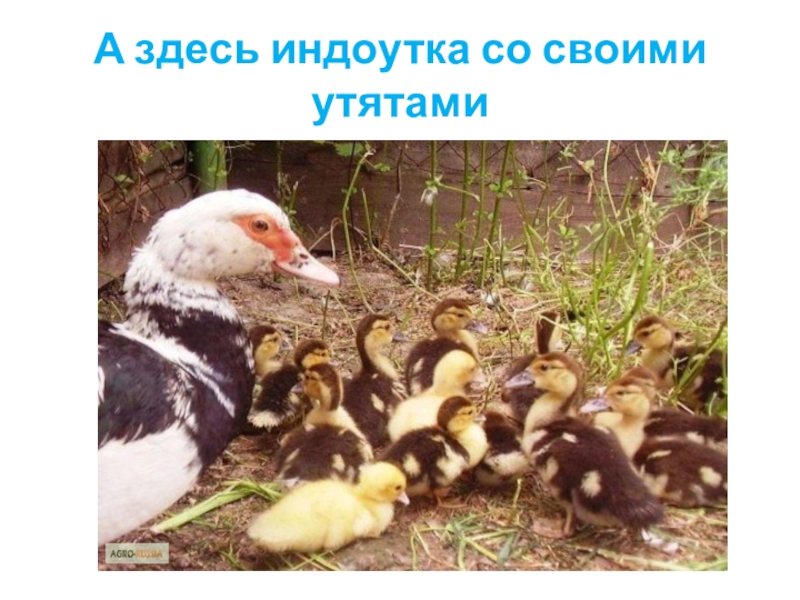 Слайд 8А здесь индоутка со своими утятами
