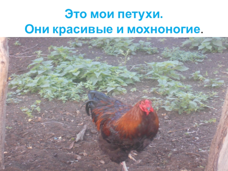 Слайд 2Это мои петухи. Они красивые и мохноногие.
