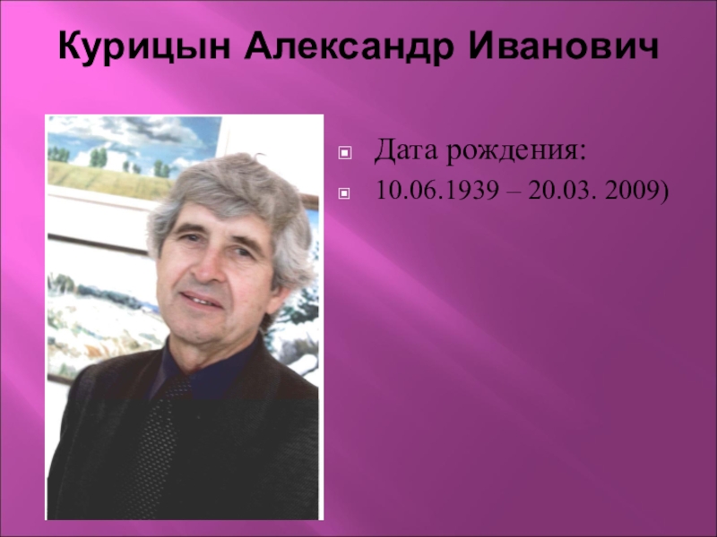 Курицын Александр Иванович Дата рождения: 10.06.1939 – 20.03. 2009)