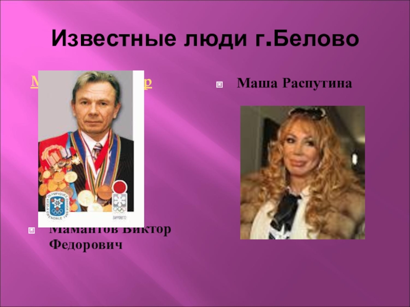 Известные люди г.БеловоМаматов Виктор Фёдорович Мамантов Виктор ФедоровичМаша Распутина