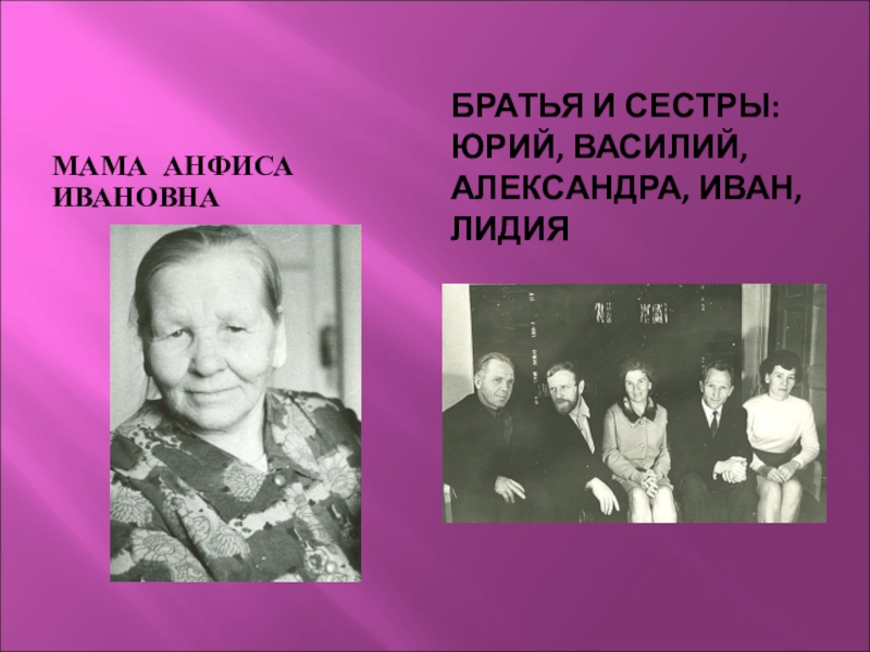 МАМА АНФИСА ИВАНОВНА БРАТЬЯ И СЕСТРЫ: ЮРИЙ, ВАСИЛИЙ, АЛЕКСАНДРА, ИВАН, ЛИДИЯ