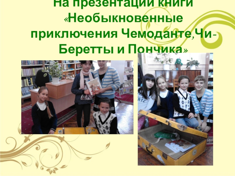 Слайд 11 На презентации книги «Необыкновенные приключения Чемоданте,Чи-Беретты и Пончика»