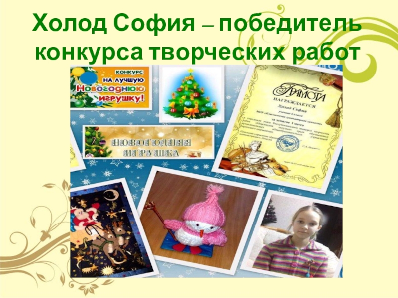 Слайд 25Холод София – победитель конкурса творческих работ