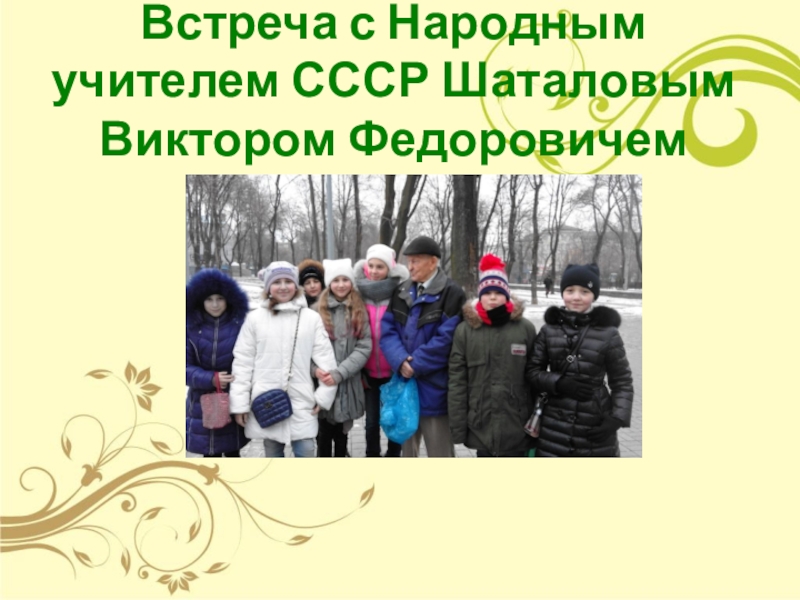 Слайд 27Встреча с Народным учителем СССР Шаталовым Виктором Федоровичем