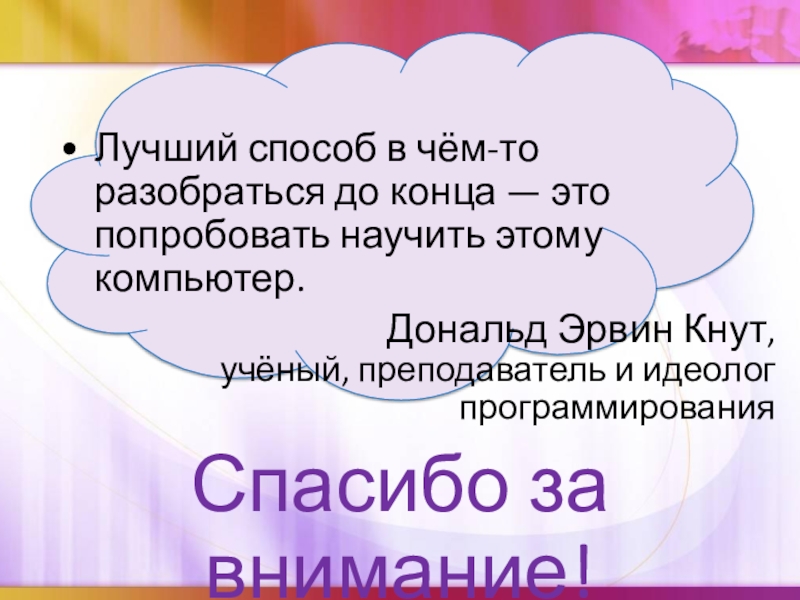 Это сайт презентаций, где можно хранить и обмениваться своими презентациями, докладами, проектами, шаблонами в формате PowerPoint с другими пользователями. Мы помогаем школьникам, студентам, учителям, преподавателям хранить и обмениваться учебными материалами.