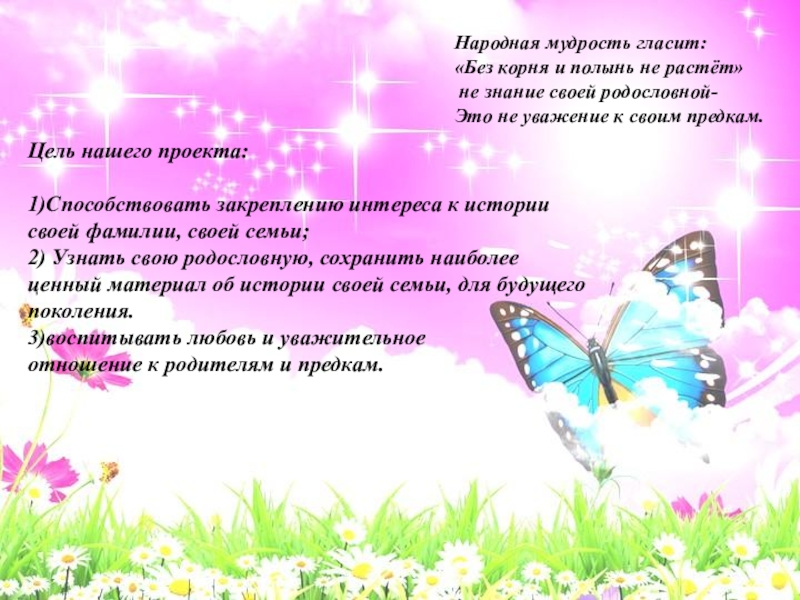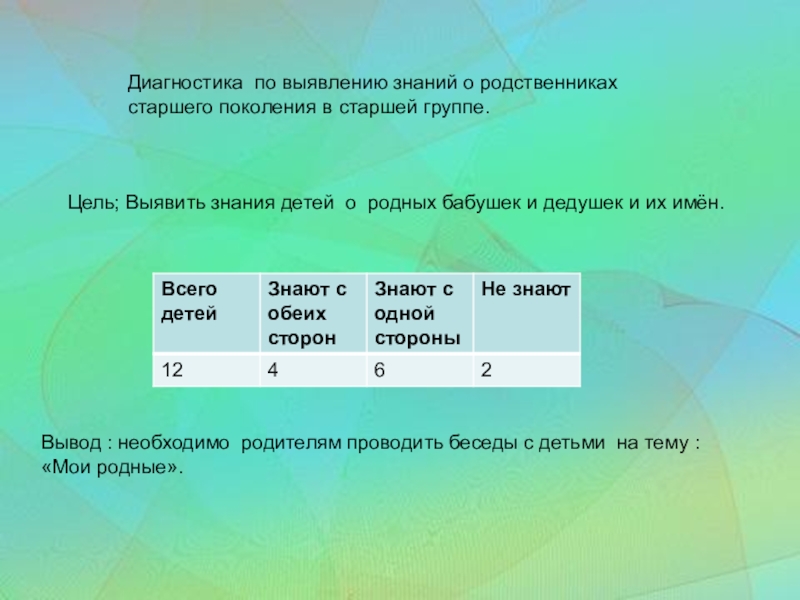 Цель; Выявить знания детей о родных бабушек и дедушек и их имён.