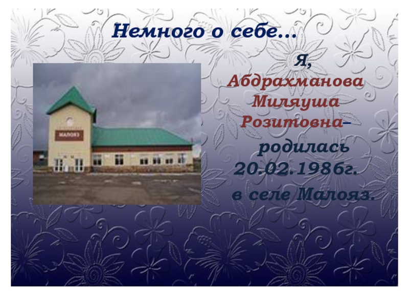 Немного о себе…Я, Абдрахманова Миляуша Розитовна– родилась 20.02.1986г.в селе Малояз.