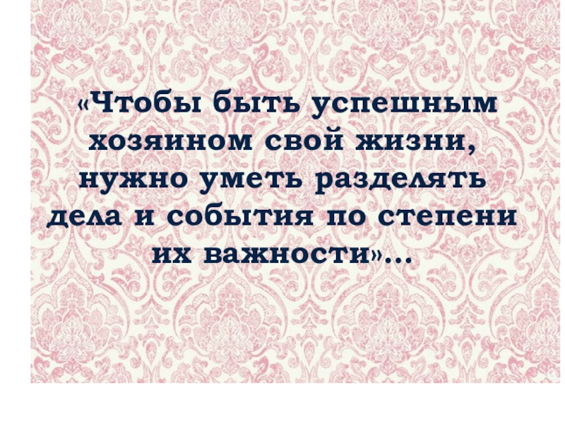 «Чтобы быть успешным хозяином свой жизни, нужно уметь разделять дела и события по степени их важности»…