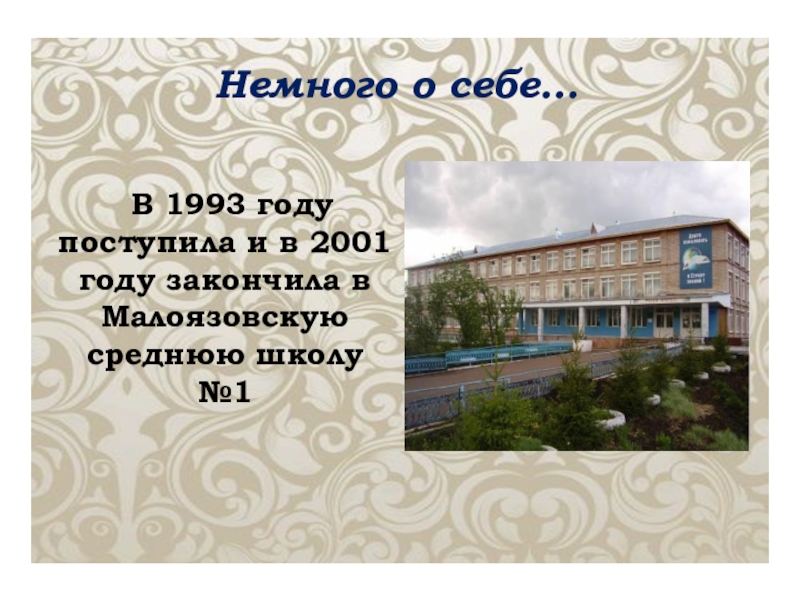 В 1993 году поступила и в 2001 году закончила в Малоязовскую среднюю школу №1Немного о себе…