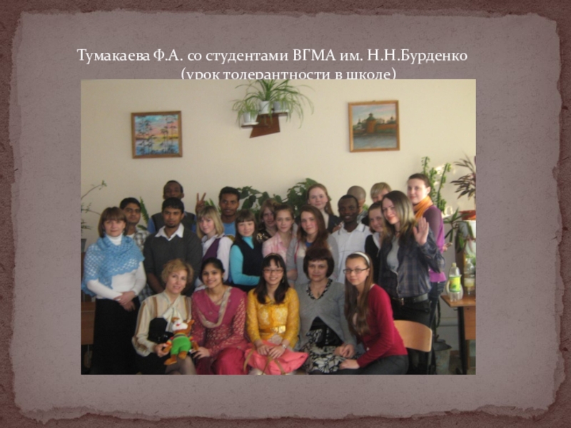 Слайд 14 Тумакаева Ф.А. со студентами ВГМА