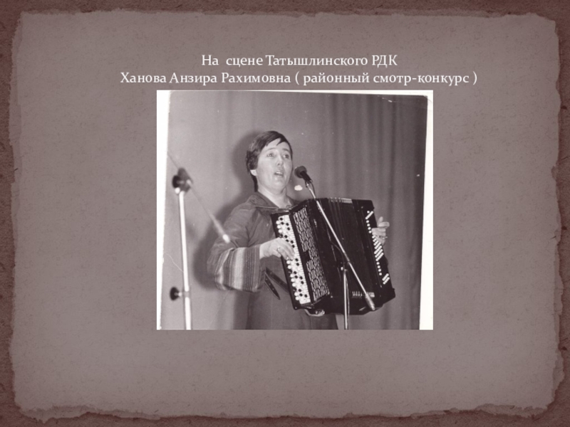 Слайд 5На сцене Татышлинского РДК Ханова Анзира Рахимовна ( районный смотр-конкурс )