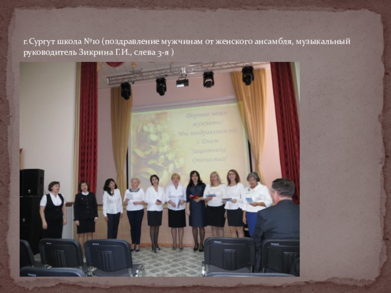 Слайд 28г.Сургут школа №10 (поздравление мужчинам от женского ансамбля, музыкальный руководитель Зикрина