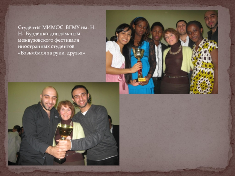 Слайд 17Студенты МИМОС ВГМУ им. Н.Н. Бурденко-дипломанты межвузовского фестиваля иностранных студентов «Возьмёмся