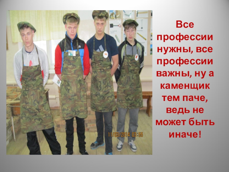 Слайд 23Все профессии нужны, все профессии важны, ну а каменщик тем паче,