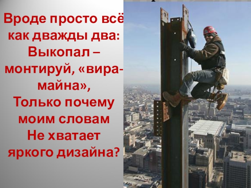 Слайд 9Вроде просто всё как дважды два: Выкопал – монтируй, «вира-майна», Только почему моим