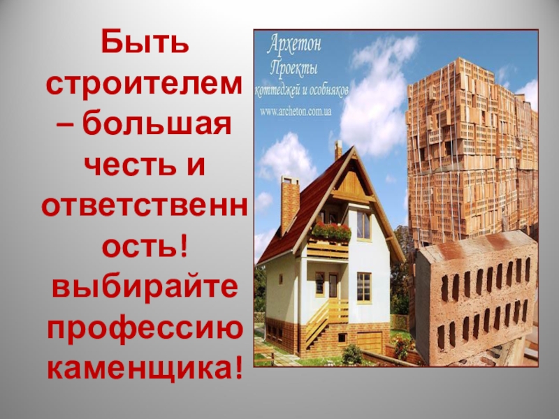 Слайд 22Быть строителем – большая честь и ответственность! выбирайте профессию каменщика!