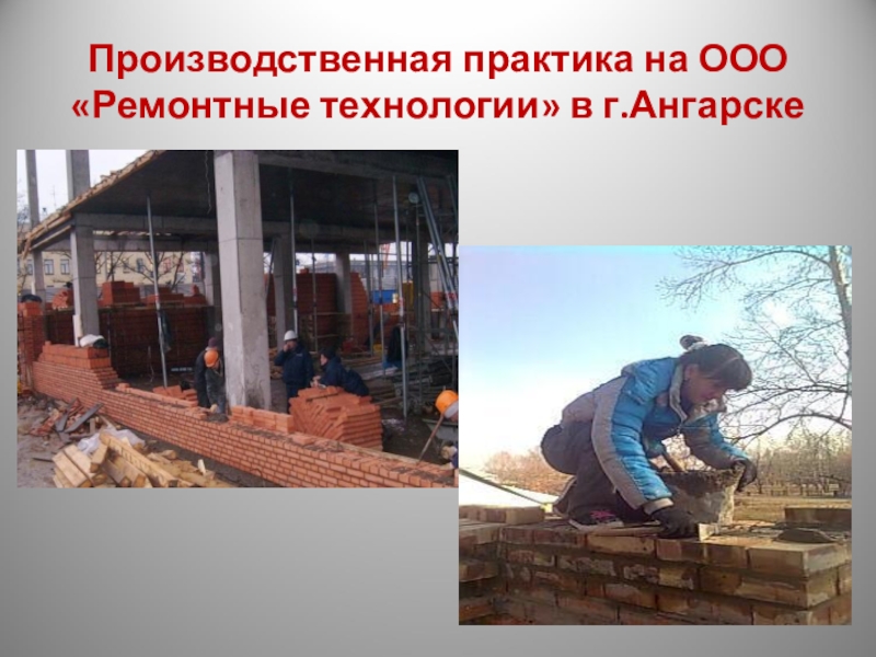 Слайд 19Производственная практика на ООО «Ремонтные технологии» в г.Ангарске