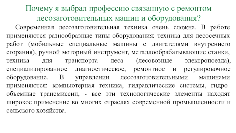 Слайд 3Почему я выбрал профессию связанную с ремонтом лесозаготовительных машин и оборудования?