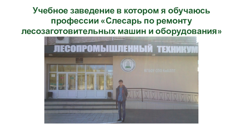 Слайд 2Учебное заведение в котором я обучаюсь профессии «Слесарь по ремонту лесозаготовительных