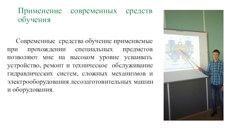 позволяют мне на высоком уровне усваивать устройство, ремонт и техническое обслуживание гидравлических систем, сложных механизмов и электрооборудования лесозаготовительных машин и оборудования.
